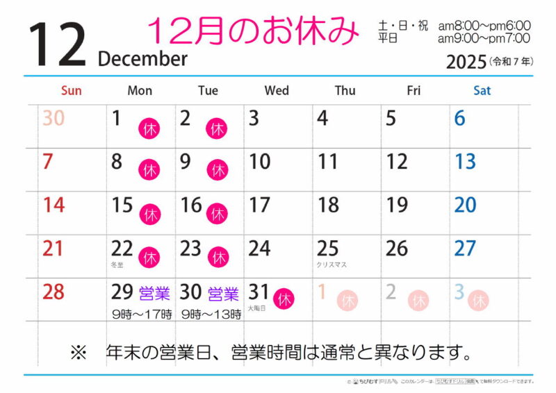 12月のお休み
